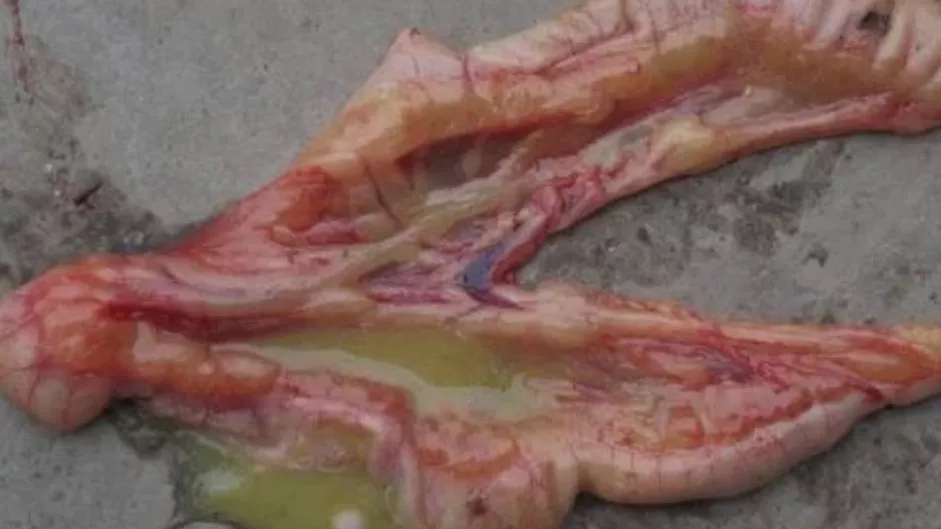 剖檢可見(jiàn)腸道擴(kuò)張,腸內(nèi)充滿(mǎn)液體、氣體,腸壁變薄,腸粘膜脫落,肝臟顏色變淺,有時(shí)表面有壞死灶,腎臟腫大、萎縮,顏色蒼白或有白色尿酸鹽沉積。